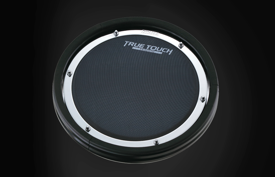 To emulate the most important feature in a pad - feel - TAMA utilized a multi-layered design to produce a pad that is full of nuance. A heavy and hardy steel backing plate coupled with a hard resin disc-shaped base provide a super-solid foundation and feel. The internal resin "nest" contains two different foam pad materials: One with a softer density and one with a harder density. This design produces a springy-yet-firm stick rebound quality. The two-ply mesh-head striking surface is connected to the pad housing using six tension rods that tune the drumhead from low-mid-high, which adds an important, customized and nuanced feel and sound. Even buzz rolls at the outer edge have a more bouncy quality than when played towards the pad center.