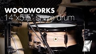 Featuring an 8-ply shell, this 14x5.5" WOODWORKS snare drum delivers a crisp, yet warm tone with solid attack. For a unique look, this drum is coverd in a Black Oak Art Grain wrap and finished with Matte Black hardware.